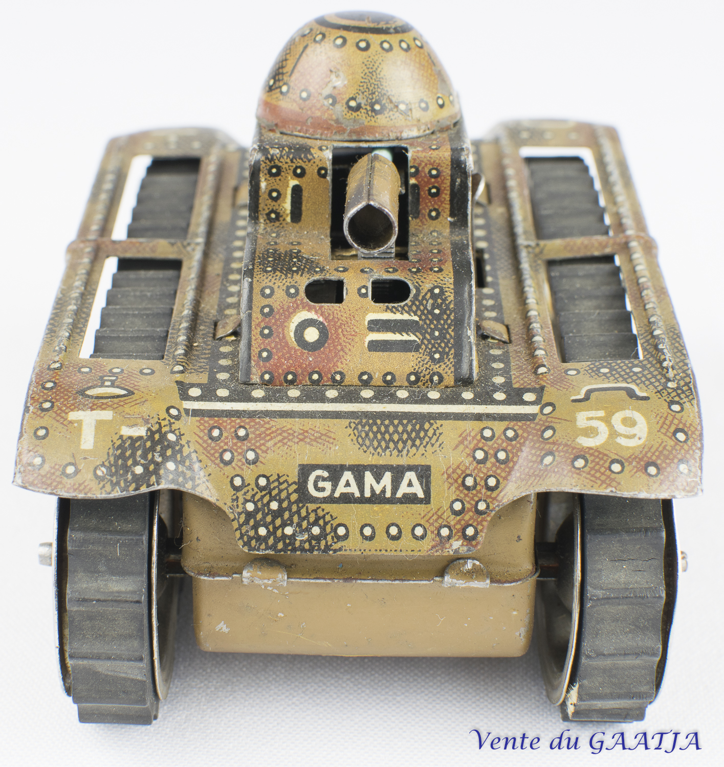 ![]() ![]() | Char à chenilles métaliques, mécanique, motif camouflage Bon fonctionnement et excellent état. 10 cm Pas de clé 43 Eur. + frais d'expédition (Tarif B) Réf. "JM12" |